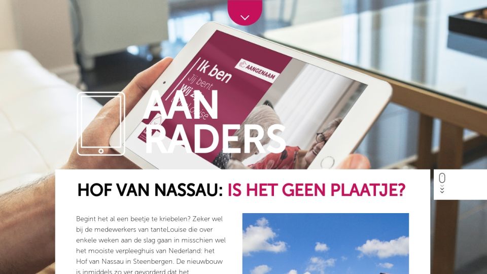 Begint het al een beetje te kriebelen? Zeker wel bij de medewerkers van tanteLouise die over enkele weken aan de slag gaan in misschien wel het mooiste verpleeghuis van Nederland: het Hof van Nassau in Steenbergen. De nieuwbouw is inmiddels zo ver gevorderd dat het steigermateriaal al is weggehaald. Wat nog ontbreekt zijn de balustrades van de balkons die uitzicht bieden op de Steenbergse haven. Eind oktober wordt het gehele pand opgeleverd, medio november nemen de 120 bewoners hun intrek. Dit plaatje is al veelbelovend, maar wacht maar tot het af is en ook het groene doek langs de erfscheiding valt... Het aftellen kan beginnen...